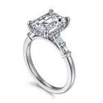14K White Gold Emerald Cut Diamond Engagement Ring. 0.37cts diamonds on the sides, G-H in color and Si in clarity. Gorgeous emerald cut with a hidden halo.