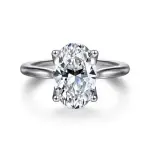 14K White Gold Oval Solitaire Engagement Ring CZ Center