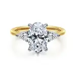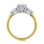14K White & Yellow Gold 10.5x 7mm CZ, .38tdw Sides Lotus Engagement Ring