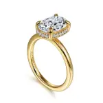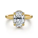 14K Yellow Gold Oval Hidden Halo Diamond Engagement Ring. 0.11cts on the hidden halo, stones are G-H in color and SI in clarity.