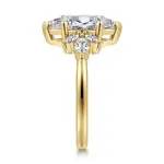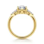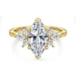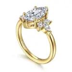 14K Yellow Gold Marquise Shape Diamond Engagement Ring. This ring has a 0.36cts cluster accent diamonds on the sides of the center stone that are G-H in color and VS2 in clarity.